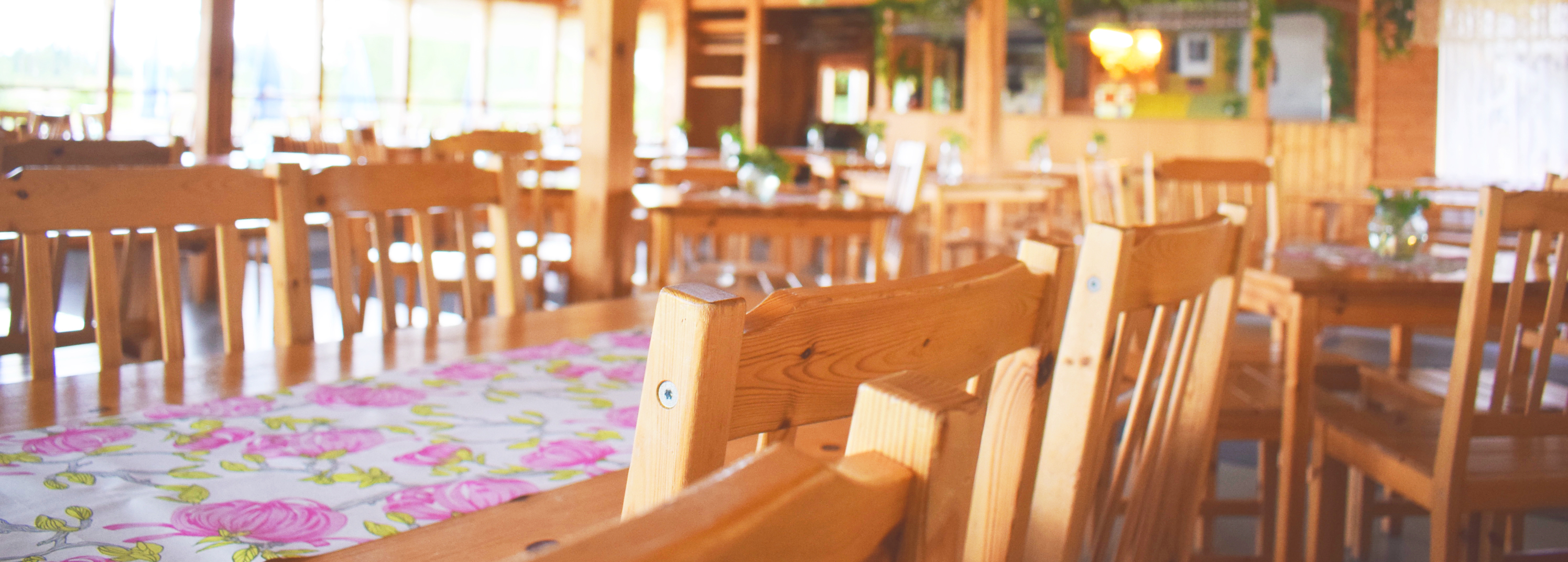 Ravintola palvelee ennakkotilauksesta noin 10-100 hengen ryhmiä. Järjestämme kaikenlaisia juhlia; häitä, synttäreitä, sukujuhlia, pikkujouluja ja niin edelleen. Lue lisää!